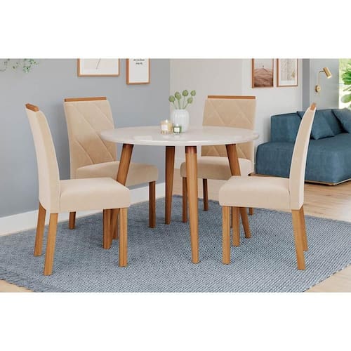 Sala de Jantar Completa Dani Tampo Madeirado c/ Vidro 109cm e 4 Cadeiras Fernanda Madeirado/Off White - Nature-Madeirado/Suede N - Cimol Abaixo segue os produtos do KIT: Sala de Jantar Completa Dani Tampo Madeirado c/ Vidro 109cm e 4 Cadeiras Fernanda Madeirado/Off White - Nature-Madeirado/Suede N - Cimol