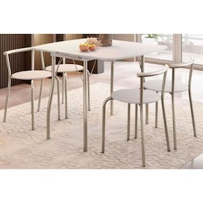 Conjunto: Mesa De Cozinha Dobrável E 4 Banquetas 105 Prata/branco - Prata/branco - Carraro