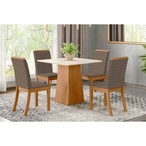 Sala de Jantar Completa Dora Tampo Madeirado 90cm e 4 Cadeiras Isa Nature/Suede Light Bege - Henn Abaixo segue os produtos do KIT: Sala de Jantar Completa Dora Tampo Madeirado 90cm e 4 Cadeiras Isa Nature/Suede Light Bege - Henn