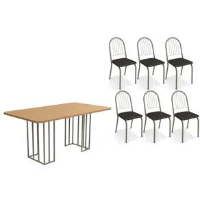 Sala de Jantar Completa Duina c/ Tampo de Madeira 160cm e 6 Cadeiras Noruega Niquel/Freijo - Courano Preto - Kappesberg