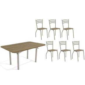 Sala de Jantar Completa Elba c/ Tampo de Madeira 160cm e 6 Cadeiras Portugal Niquel/Nogueira - Courano Capuccino - Kappesberg Abaixo segue os produtos do KIT: Sala de Jantar Completa Elba c/ Tampo de Madeira 160cm e 6 Cadeiras Portugal Niquel/Nogueira - Courano Capuccino - Kappesberg