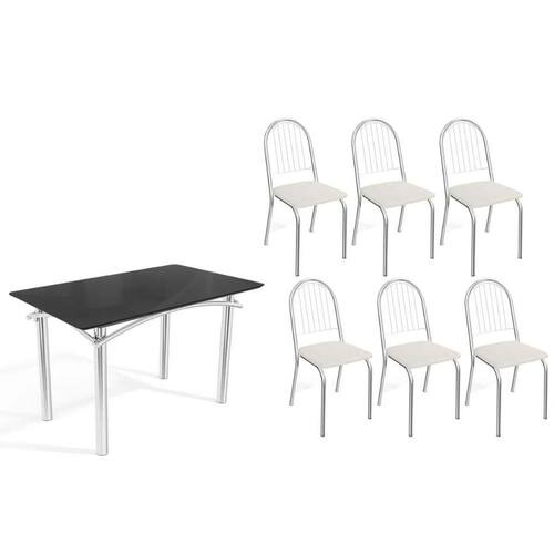 Sala de Jantar Completa Elba Tampo Madeirado c/ Vidro 120cm e 6 Cadeiras Noruega Cromada/Preto - Courano Branco - Kappesberg Abaixo segue os produtos do KIT: Sala de Jantar Completa Elba Tampo Madeirado c/ Vidro 120cm e 6 Cadeiras Noruega Cromada/Preto - Courano Branco - Kappesberg