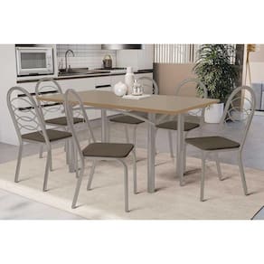 Sala de Jantar Completa Elba Tampo Madeirado c/ Vidro 160cm e 6 Cadeiras Holanda Niquel/Freijo Bronze - Courano Marrom - Kappesberg