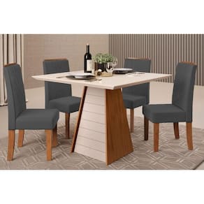 Sala de Jantar Completa Fler Tampo Madeirado c/ Vidro 90x90cm e 4 Cadeiras Zoe Freijo/Off White - Suede Lunar - DJ Móveis Abaixo segue os produtos do KIT: Sala de Jantar Completa Fler Tampo Madeirado c/ Vidro 90x90cm e 4 Cadeiras Zoe Freijo/Off White - Suede Lunar - DJ Móveis