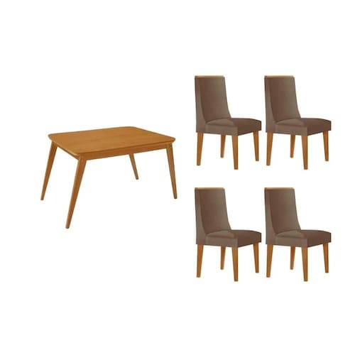Sala de Jantar Completa Havana c/ Tampo Madeirado Canto Curvo 120x80cm e 4 Cadeiras Dakota Naturale - Corano Capuccino - Rufato Abaixo segue os produtos do KIT: Sala de Jantar Completa Havana c/ Tampo Madeirado Canto Curvo 120x80cm e 4 Cadeiras Dakota Naturale - Corano Capuccino - Rufato