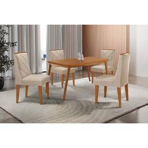 Conjunto: Mesa de Cozinha Havana c/ Tampo Madeirado Canto Curvo 120x80cm e 4 Cadeiras Pietá Naturale - Suede Creme - Rufato - Conjunto de Mesa de Cozinha com 4 Cadeiras