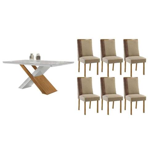 Sala de Jantar Completa Imperatriz c/ Tampo Madeirado c/ Vidro Canto Curvo 180X90cm e 6 Cadeiras Tilia Naturale/Off White - Suede Creme - Rufato Abaixo segue os produtos do KIT: Sala de Jantar Completa Imperatriz c/ Tampo Madeirado c/ Vidro Canto Curvo 180X90cm e 6 Cadeiras Tilia Naturale/Off White - Suede Creme - Rufato