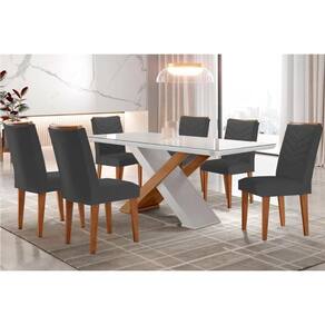 Sala de Jantar Completa Imperatriz Tampo Madeirado c/ Vidro Canto Curvo 180x90 e 6 Cadeiras Londrina Imbuia/Off White - Suede Grafite - Rufato