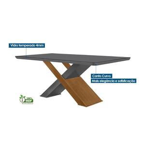 Mesa de Sala Jantar Imperatriz c/ Tampo 180x90cm Madeirado Vidro Canto Curvo - Imbuia/Grafite - Rufato