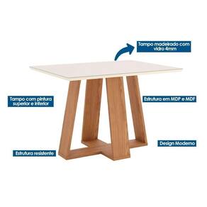 Sala de Jantar Completa Lins SC91 Tampo Madeirado c/ Vidro Canto Reto 120x80cm e 4 Cadeiras Tauá Nature/Linho - Henn Abaixo segue os produtos do KIT: Sala de Jantar Completa Lins SC91 Tampo Madeirado c/ Vidro Canto Reto 120x80cm e 4 Cadeiras Tauá Nature/Linho - Henn Mesa de Sala Jantar Lins SC90 c/ Tampo Madeirado c/ Vidro Reto 120x80cm Nature/Off White - Henn