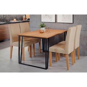 Sala de Jantar Completa Lisa Tampo Madeirado 130x80cm e 4 Cadeiras Maia Cinamomo/Suede Gengibre Bege - Cimol Abaixo segue os produtos do KIT: Sala de Jantar Completa Lisa Tampo Madeirado 130x80cm e 4 Cadeiras Maia Cinamomo/Suede Gengibre Bege - Cimol