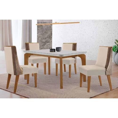 Sala de Jantar Completa Londrina c/ Tampo Madeirado c/ Vidro Canto Curvo 120x80cm 4 Cadeiras Tilia Naturale/Off White - Suede Creme - Rufato Abaixo segue os produtos do KIT: Sala de Jantar Completa Londrina c/ Tampo Madeirado c/ Vidro Canto Curvo 120x80cm 4 Cadeiras Tilia Naturale/Off White - Suede Creme - Rufato