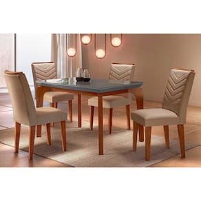 Sala de Jantar Completa Londrina Tampo Madeirado c/ Vidro Curvo 120x80 e 4 Cadeiras Londrina Imbuia/Suede Capuccino - Rufato Abaixo segue os produtos do KIT: Sala de Jantar Completa Londrina Tampo Madeirado c/ Vidro Curvo 120x80 e 4 Cadeiras Londrina Imbuia/Suede Capuccino - Rufato