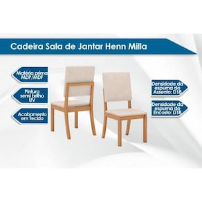 Cadeira Sala de Jantar Milla Kit 2 Un Nature/Linho Bege - Henn