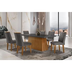 Sala de Jantar Completa Luna c/ Tampo de Vidro Canto Curvo 180x90cm e 6 cadeiras Londrina Imbuia/Grafite - Linho Grafite - Rufato