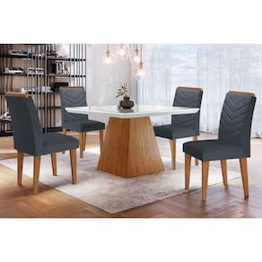 Abaixo segue os produtos do KIT: Sala de Jantar Completa Luna c/ Tampo Madeirado c/ Vidro Canto Curvo 90x90cm e 4 cadeiras Londrina Imbuia/Off White - Linho Grafite - Rufato