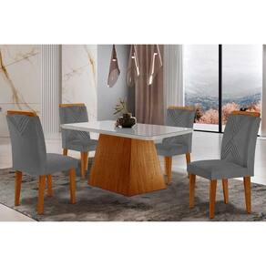Conjunto: Mesa de Cozinha Luna Tampo Madeirado c/ Vidro Canto Curvo 120x80 e 4 Cadeiras Amsterdã Capuccino/Suede Grafite - Rufato