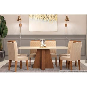 Sala de Jantar Completa Maitê c/ Tampo Madeirado c/ Vidro Canto Curvo 160x80cm e 6 Cadeiras Paola Savana-Nature/Off White-Suede Nude Bege - Cimol Abaixo segue os produtos do KIT: Sala de Jantar Completa Maitê c/ Tampo Madeirado c/ Vidro Canto Curvo 160x80cm e 6 Cadeiras Paola Savana-Nature/Off White-Suede Nude Bege - Cimol