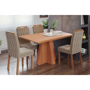 Sala de Jantar Completa Maitê Tampo Madeirado 130x80cm e 4 Cadeiras Paola Cinamomo - Carvalho/Suede Joli Capuccino - Cimol