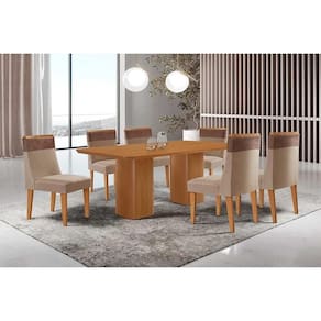 Sala de Jantar Completa Maldivas c/ Tampo Madeirado Canto Curvo 180x90cm e 6 Cadeiras Jaspe Naturale - Linho Capuccino - Rufato Abaixo segue os produtos do KIT: Sala de Jantar Completa Maldivas c/ Tampo Madeirado Canto Curvo 180x90cm e 6 Cadeiras Jaspe Naturale - Linho Capuccino - Rufato