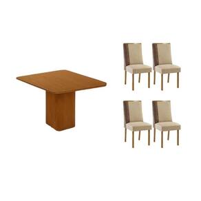 Sala de Jantar Completa Maldivas c/ Tampo Madeirado Canto Curvo 90x90cm e 4 Cadeiras Tilia Naturale - Linho Bege - Rufato Abaixo segue os produtos do KIT: Sala de Jantar Completa Maldivas c/ Tampo Madeirado Canto Curvo 90x90cm e 4 Cadeiras Tilia Naturale - Linho Bege - Rufato
