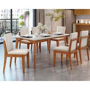 Conjunto: Mesa De Cozinha Monalisa C/ Tampo Madeirado C/ Vidro 160cm E 6 Cadeiras Lady Natural - Nesher