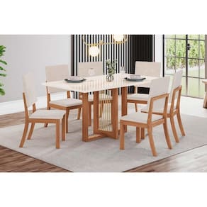 Sala de Jantar Completa Natalí c/ Tampo Madeirado c/ Vidro Reto 160x90cm e 6 Cadeiras Milla Nature/Suede Light Linho - Henn Abaixo segue os produtos do KIT: Sala de Jantar Completa Natalí c/ Tampo Madeirado c/ Vidro Reto 160x90cm e 6 Cadeiras Milla Nature/Suede Light Linho - Henn