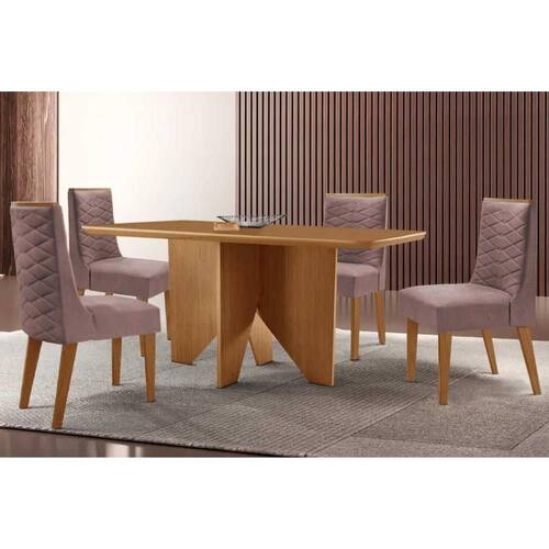 Sala de Jantar Completa Nevada c/ Tampo Madeirado Canto Curvo 120x80cm e 4 Cadeiras Dafne Naturale - Linho Capuccino - Rufato Abaixo segue os produtos do KIT: Sala de Jantar Completa Nevada c/ Tampo Madeirado Canto Curvo 120x80cm e 4 Cadeiras Dafne Naturale - Linho Capuccino - Rufato