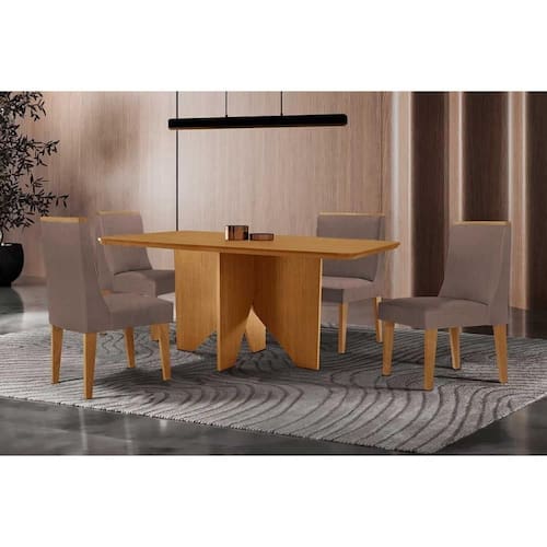 Sala de Jantar Completa Nevada c/ Tampo Madeirado Canto Curvo 120x80cm e 4 Cadeiras Dakota Naturale - Corano Capuccino - Rufato Abaixo segue os produtos do KIT: Sala de Jantar Completa Nevada c/ Tampo Madeirado Canto Curvo 120x80cm e 4 Cadeiras Dakota Naturale - Corano Capuccino - Rufato