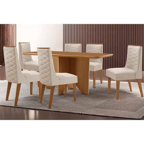 Sala de Jantar Completa Nevada c/ Tampo Madeirado Canto Curvo 180x90cm e 6 Cadeiras Dafne Naturale - Suede Creme - Rufato Abaixo segue os produtos do KIT: Sala de Jantar Completa Nevada c/ Tampo Madeirado Canto Curvo 180x90cm e 6 Cadeiras Dafne Naturale - Suede Creme - Rufato