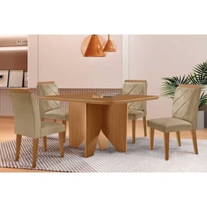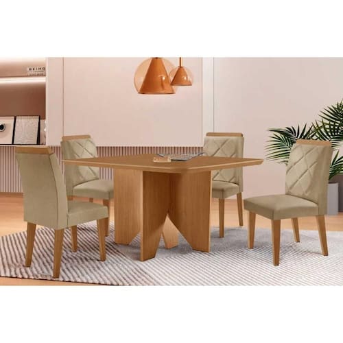Sala de Jantar Completa Nevada c/ Tampo Madeirado Canto Curvo 90x90cm e 4 Cadeiras Pietá Naturale - Linho Bege - Rufato Abaixo segue os produtos do KIT: Sala de Jantar Completa Nevada c/ Tampo Madeirado Canto Curvo 90x90cm e 4 Cadeiras Pietá Naturale - Linho Bege - Rufato
