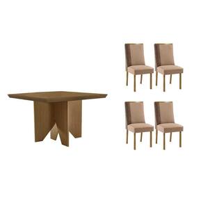 Sala de Jantar Completa Nevada c/ Tampo Madeirado Canto Curvo 90x90cm e 4 Cadeiras Tilia Naturale - Linho Capuccino - Rufato Abaixo segue os produtos do KIT: Sala de Jantar Completa Nevada c/ Tampo Madeirado Canto Curvo 90x90cm e 4 Cadeiras Tilia Naturale - Linho Capuccino - Rufato