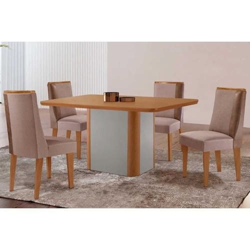 Sala de Jantar Completa Pietá c/ Tampo Madeirado Canto Curvo 120x80cm e 4 Cadeiras Tilia Naturale/Off White - Linho Capuccino - Rufato Abaixo segue os produtos do KIT: Sala de Jantar Completa Pietá c/ Tampo Madeirado Canto Curvo 120x80cm e 4 Cadeiras Tilia Naturale/Off White - Linho Capuccino - Rufato