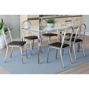 Sala de Jantar Completa Reno c/ Tampo de Vidro 150x80cm e 6 Cadeiras Holanda Cromada/Preto 110 - Kappesberg Abaixo segue os produtos do KIT: Sala de Jantar Completa Reno c/ Tampo de Vidro 150x80cm e 6 Cadeiras Holanda Cromada/Preto 110 - Kappesberg