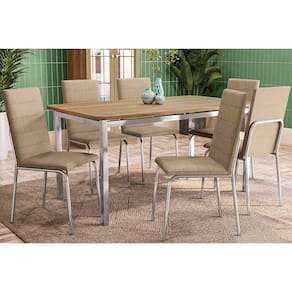 Sala de Jantar Completa Reno c/ Tampo de Madeira 160cm e 6 Cadeiras Amsterdã Cromada/Capuccino - Kappesberg Abaixo segue os produtos do KIT: Sala de Jantar Completa Reno c/ Tampo de Madeira 160cm e 6 Cadeiras Amsterdã Cromada/Capuccino - Kappesberg Tampo Mesa Sala de Jantar Madeirado F160 Retangular 90x160cm Nogueira - Kappesberg