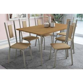 Conjunto: Mesa De Cozinha Sena Tampo Madeirado 90x160cm E 4 Cadeiras Florença Niquel/nogueira - Capuccino - Kappesberg