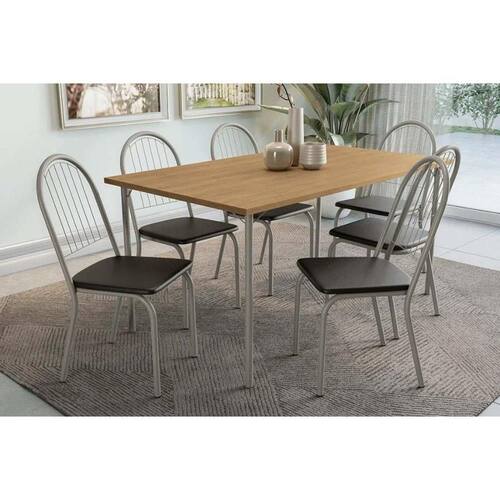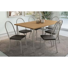 Sala de Jantar Completa Sena Tampo Madeirado 90x160cm e 6 Cadeiras Noruega Niquel/Nogueira - Preto - Kappesberg Abaixo segue os produtos do KIT: Sala de Jantar Completa Sena Tampo Madeirado 90x160cm e 6 Cadeiras Noruega Niquel/Nogueira - Preto - Kappesberg