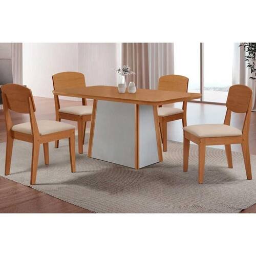 Mesa de Sala Jantar Tília c/ Tampo Madeirado c/ Canto Curvo 120X80cm Off White/Naturale/Naturale - Rufato