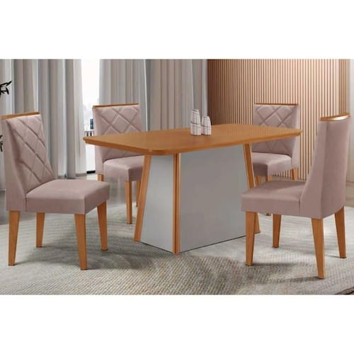 Sala de Jantar Completa Tilia c/ Tampo Madeirado Canto Curvo 120x80cm e 4 Cadeiras Pietá Naturale/Off White - Linho Capuccino - Rufato Abaixo segue os produtos do KIT: Sala de Jantar Completa Tilia c/ Tampo Madeirado Canto Curvo 120x80cm e 4 Cadeiras Pietá Naturale/Off White - Linho Capuccino - Rufato