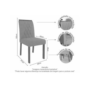 Dimensões(Cm): Cadeira Jantar Juliana Wood Kit 2 Un Comprimento(Profundidade): 57 cm Largura: 46 cm Altura: 102 cm