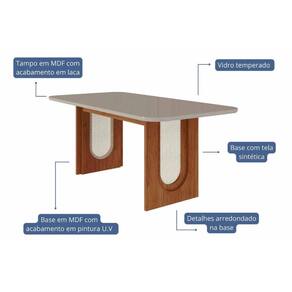 Mesa de Sala Jantar Valentina c/ Tampo Madeirado c/ Vidro 180x90cm Cinamomo/Off White - Cimol