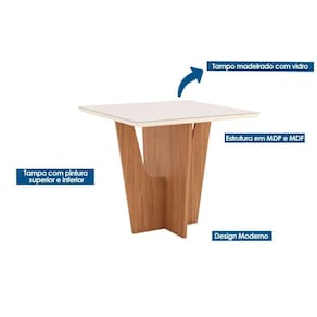 Mesa de Sala Jantar Vértice c/ Tampo Madeirado c/ Vidro 90x90cm Nature/Off White - Henn