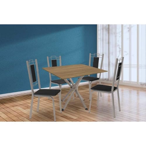 Sala de Jantar Completa Volga c/ Tampo de Madeira 90cm e 4 Cadeiras Florença Niquel/Nogueira - Courano Preto - Kappesberg Abaixo segue os produtos do KIT: Sala de Jantar Completa Volga c/ Tampo de Madeira 90cm e 4 Cadeiras Florença Niquel/Nogueira - Courano Preto - Kappesberg