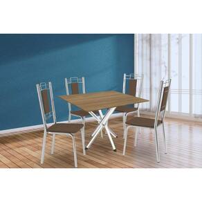 Sala de Jantar Completa Volga c/ Tampo de Madeira 90cm e 4 Cadeiras Lisboa Cromado/Nogueira - Marrom - Kappesberg Abaixo segue os produtos do KIT: Sala de Jantar Completa Volga c/ Tampo de Madeira 90cm e 4 Cadeiras Lisboa Cromado/Nogueira - Marrom - Kappesberg