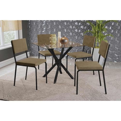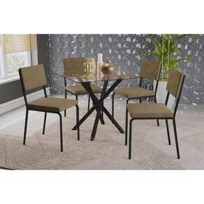 Sala de Jantar Completa Volga c/ Tampo de Vidro 90cm e 4 Cadeiras Zaria Preto - Suede Bege - Kappesberg Abaixo segue os produtos do KIT: Sala de Jantar Completa Volga c/ Tampo de Vidro 90cm e 4 Cadeiras Zaria Preto - Suede Bege - Kappesberg