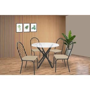 Sala de Jantar Completa Volga c/ Tampo de Vidro 95cm e 4 Cadeiras Noruega Preto - Bege - Kappesberg Abaixo segue os produtos do KIT: Sala de Jantar Completa Volga c/ Tampo de Vidro 95cm e 4 Cadeiras Noruega Preto - Bege - Kappesberg Tampo Mesa Sala de Jantar Vidro TAV9561 Vidro Redondo 95cm Incolor - Kappesberg