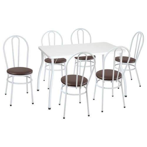 Conjunto Mesa De Jantar 115cm Com 6 Cadeiras Multimóveis Cr50136 Branco Marrom