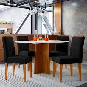Conjunto Mesa de Jantar 1,20m Anitta - Tampo MDF com Vidro e 4 Cadeiras Ana Ypê/Off White/Ja03 - New Ceval
