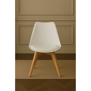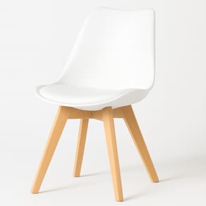 4 cadeiras com assento estofado branco e base de madeira