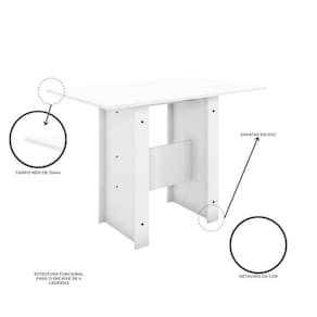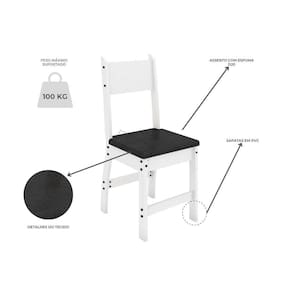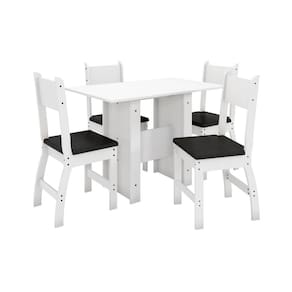 Características: Acabamento pintura UV, bordas em OS, resistente. Estrutura da mesa MDP 15mm Estrutura cadeira MDP 15mm e MDF 18mm Assento em material sintético 4 Cadeiras